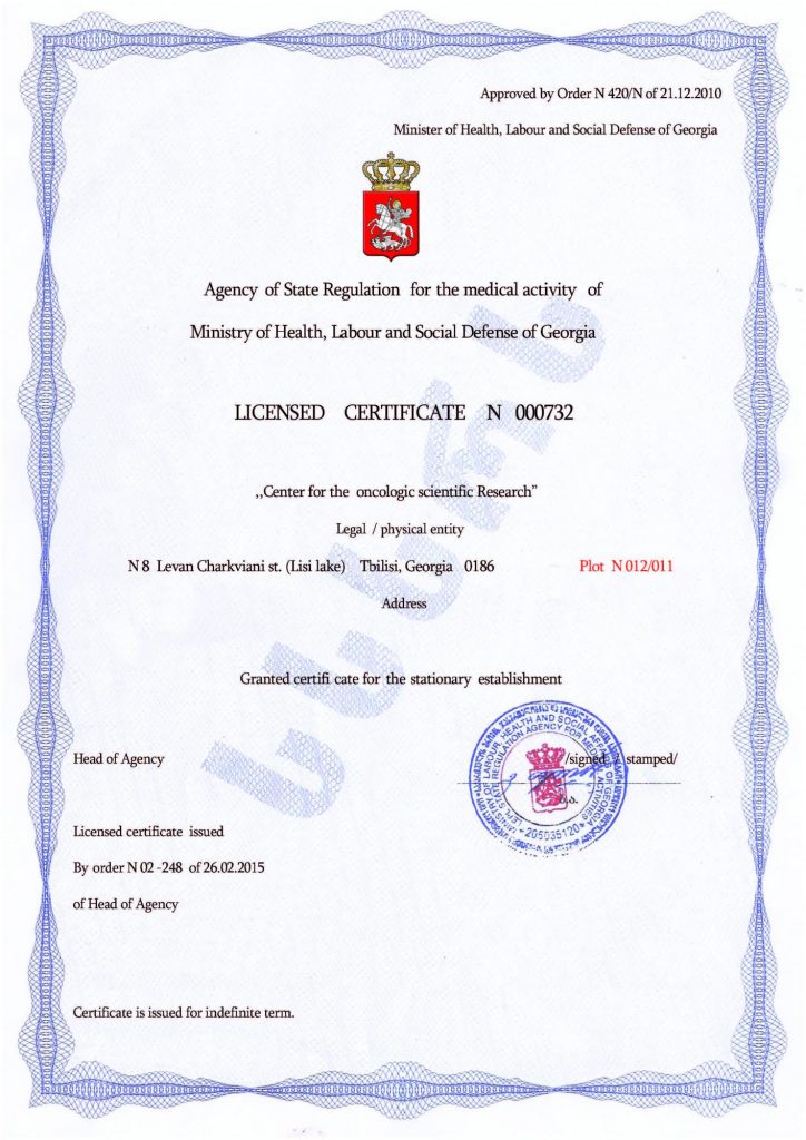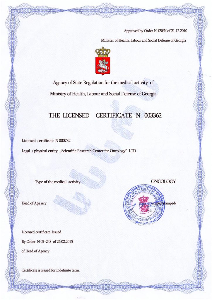 Le centre médical Mardaleishvili est un établissement de santé de niveau mondial. Des recherches sont constamment menées dans la clinique, et de nouvelles méthodes de diagnostic et de traitement des néoplasmes malins sont développées.